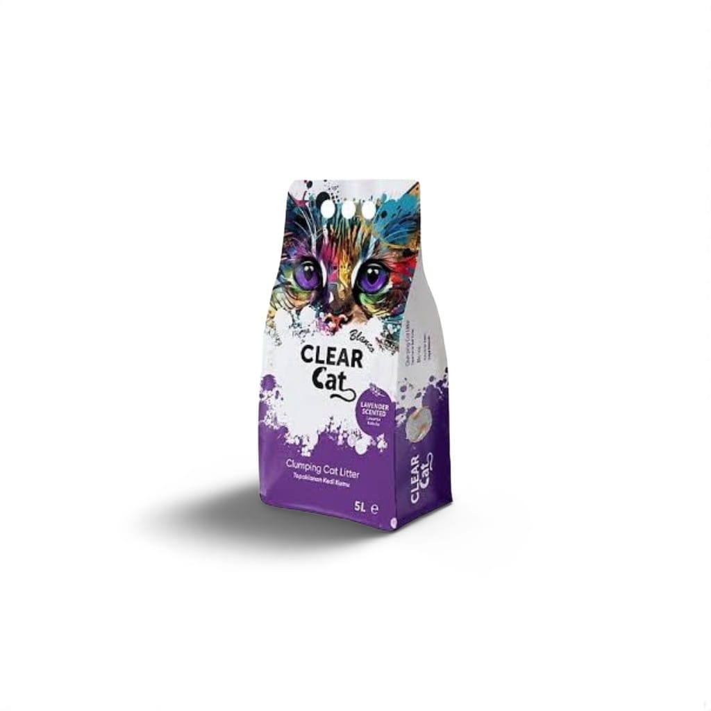 Clear Cat Blanco Lavanta Kokulu Bentonit Kedi Kumu, kedinizin hijyenini en iyi şekilde sağlarken evinize de temizlik ve ferahlık katar.